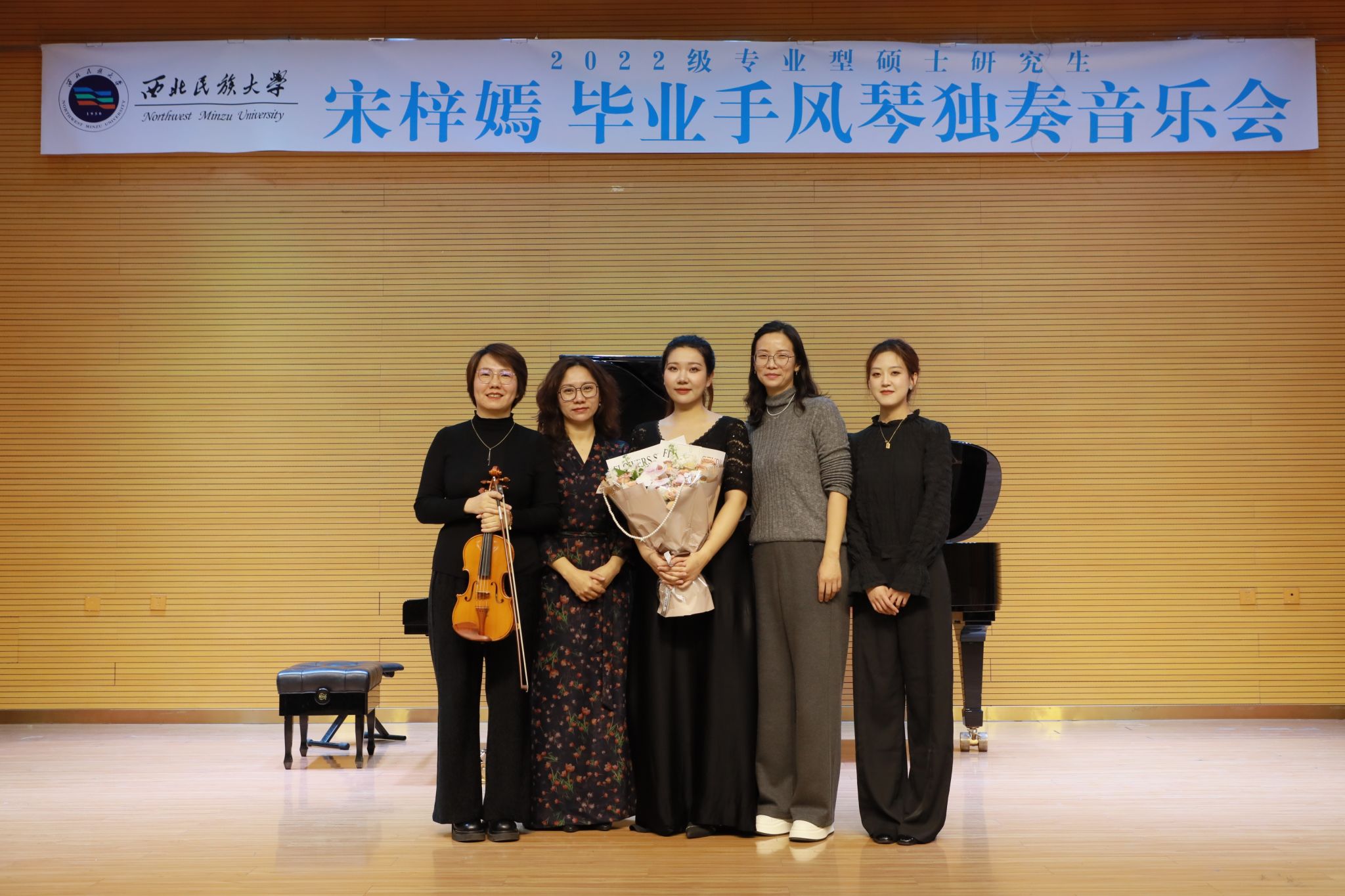 2024年10月30日,2022级专业型硕士研究生宋梓嫣成功举办毕业手风琴独奏音乐会。整场音乐会将近一个小时,共演奏了《E大调奏鸣曲》《爱之圆舞曲》《美丽的草原我的家》《3-3-2》《目送》《夏日的风》《魔鬼的浪漫曲》七首作品,其中独奏曲五首,手风琴与钢琴二重奏一首,手风琴室内乐一首。本场音乐会艺术指导由扎西措老师担任,特邀嘉宾王薇娜老师和孙琪琪同学。参加本场音乐会的评委有孟玫、王艺涵、刘一芃。