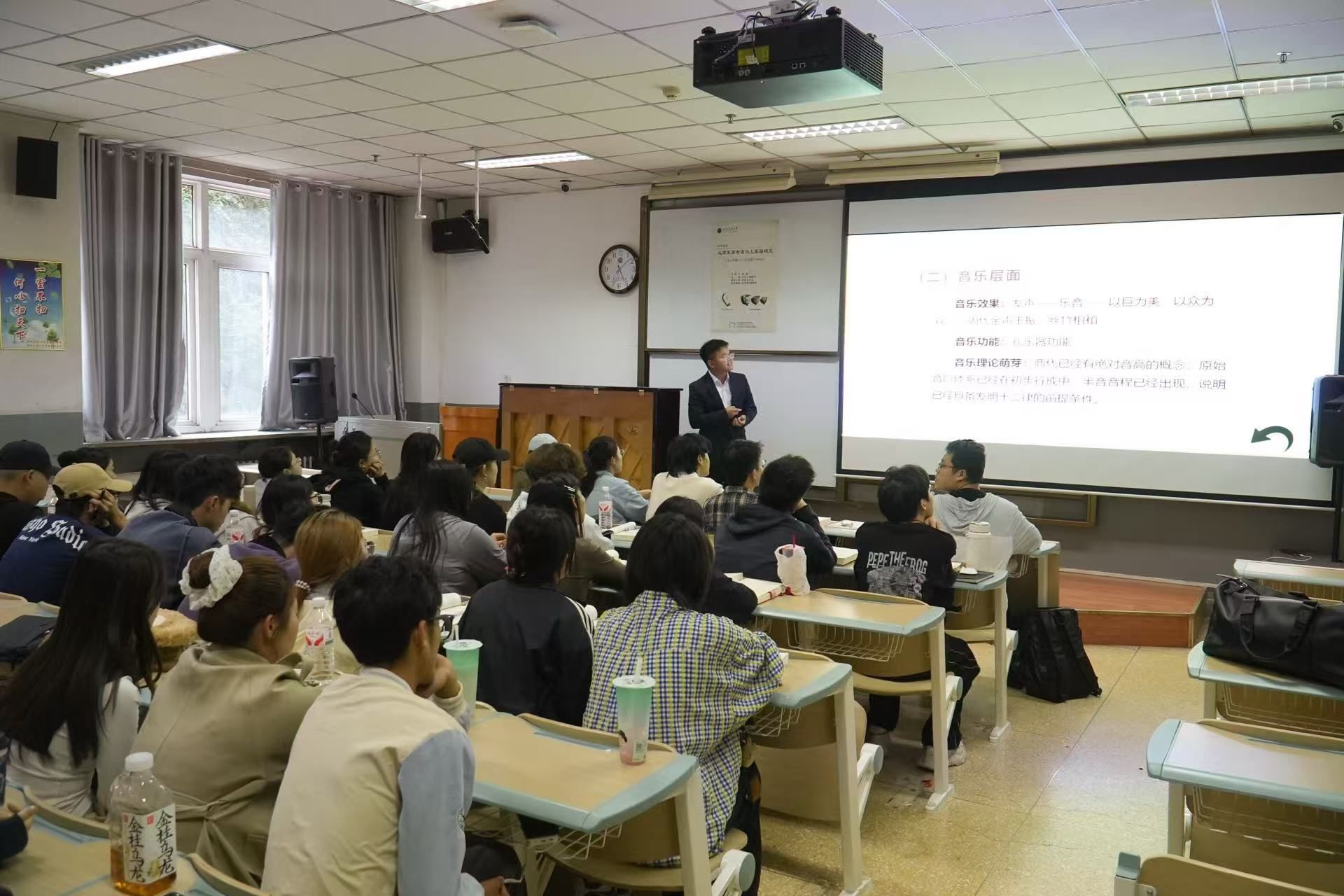 2025年9月23日,2023级学术型硕士研究生杨跃成功举办学术讲座。 讲座历时45分钟,讲座题目为远古夏商考古出土乐器研究(14万年前——公元前1046年)。讲座内容共分为:远古夏商考古出土乐器界定、远古夏商考古出土乐器本体分析、远古夏商考古出土乐器的史学价值三个部分。本次讲座由陈艺教授、马希刚教授、张蕾副教授三位老师担任评委。