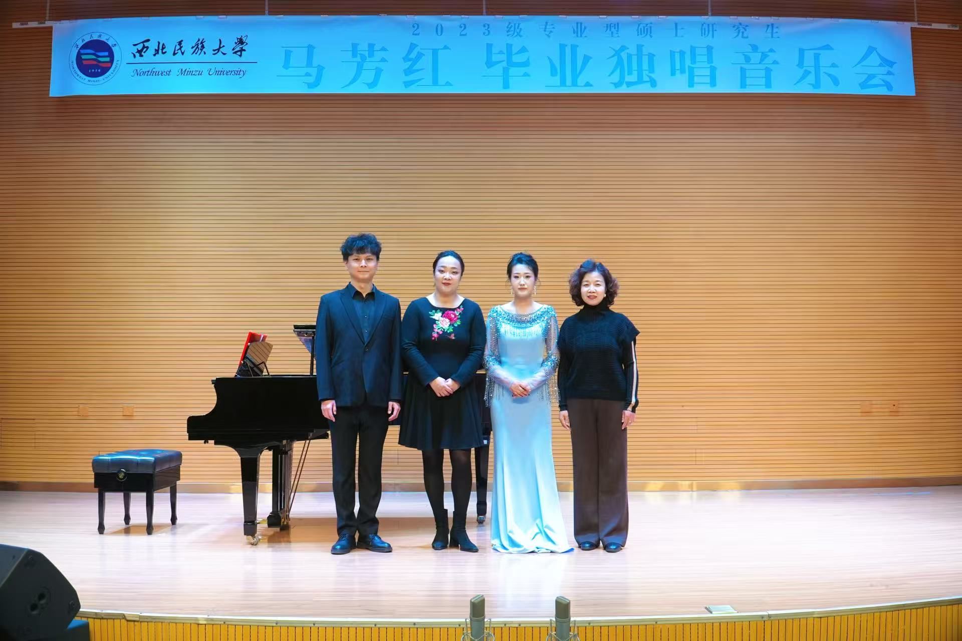 2025年10月20日15:30,2023级专业型硕士研究生马芳红成功举办毕业独唱音乐会。 参加本场音乐会的评委老师红霞、邢延青、尹辉。整场音乐会历时一个小时,共唱了《紫罗兰》《美妙的时刻即将来临》《马桑树儿搭灯台》《沂蒙山,永远的爹娘》《青玉案·元夕》等十二首作品,其中外国作品三首,地方民歌四首,中国古诗词歌曲两首,民族歌剧选段一首,艺术歌曲一首,创作歌曲一首。 本次音乐会艺术指导由马岚老师担任,主持人杨韩峰。