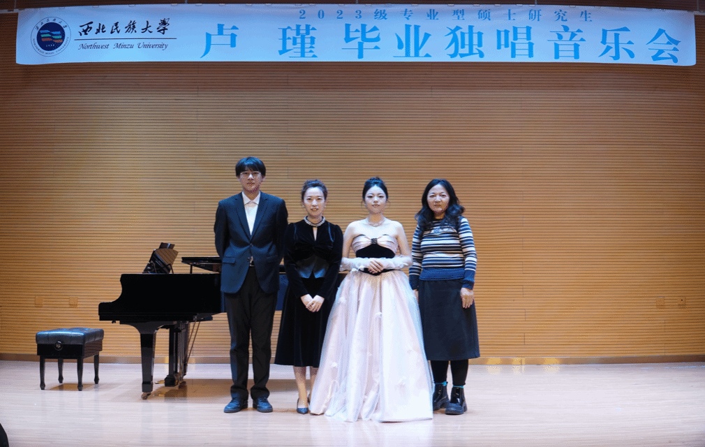 2025年11月4日15:30,2023级专硕型硕士研究生卢瑾成功举办毕业独唱音乐会。 音乐会历时一小时,演唱《思乡》《春思曲》《玫瑰三愿》《锦瑟》《一杯美酒》《帕米尔我的家乡多么美》《我爱这土地》《爱情与死亡》《我为你忧郁,优雅的女神》《我爱慕您,明亮的眼睛》《我去向何方》《为了忠实的梦想》共计十二首作品。 孙丹青担任艺术指导,红霞、邢延青、尹辉三位老师担任评委。廖羿磊同学担任主持。