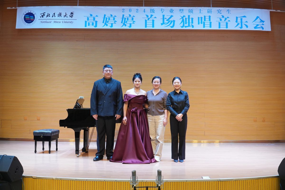 2025年11月10日14:00,2024级专业型硕士研究生高婷婷成功举办首场独唱音乐会。 整场音乐会进行了约一个小时,共演唱了十二首作品,分别是:《瓦卡伊意大利语歌唱实用练声曲》《紫罗兰》《我心里不再感到青春火焰燃烧》《让玫瑰带去幸运》《爱的小径》《年轻姑娘应该懂得》《踏雪寻梅》《玫瑰三愿》《枫叶飘落的声音》《梨花又开放》《欣喜的等待》《红玫瑰》。 音乐会艺术指导由王艳丽老师担任,主持人宋沛洋。参加本场音乐会的评委老师有黄锦、李晓玲、韩华。