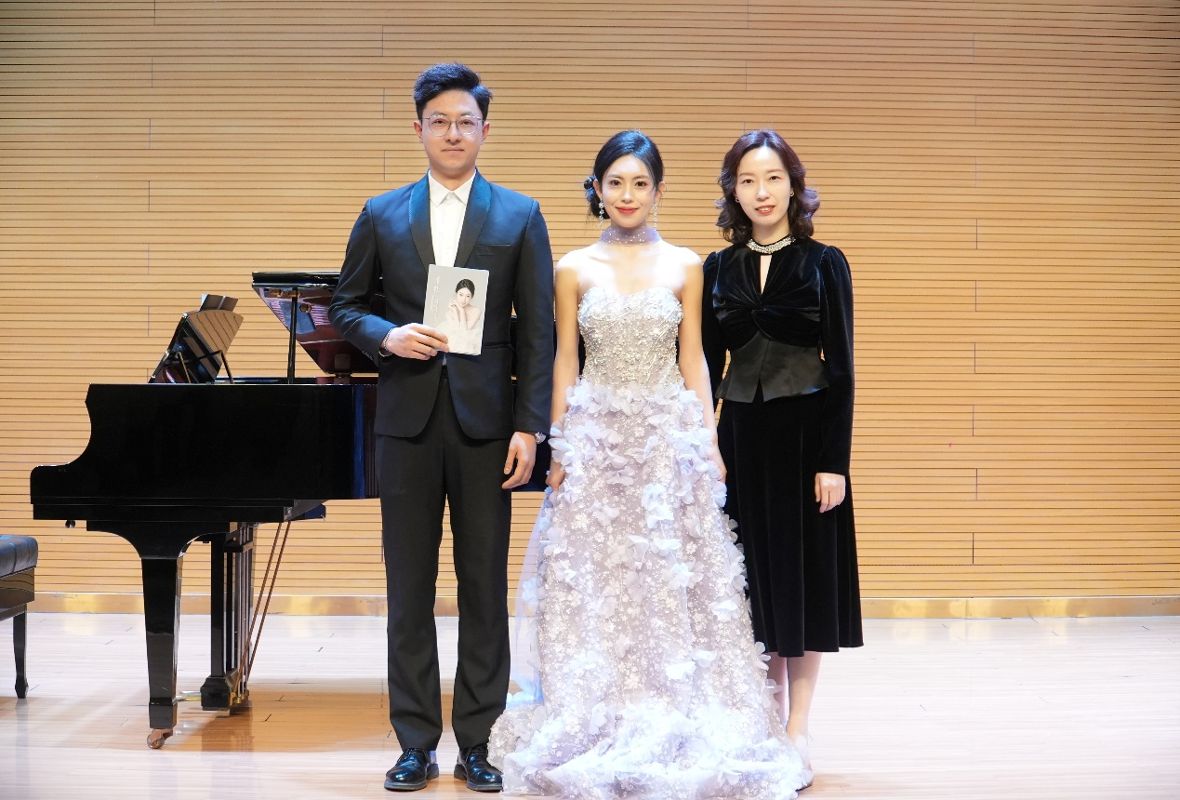 2025年11月17日14:00,2023级专业型硕士研究生曹颖成功举办毕业独唱音乐会。 整场音乐会全程1小时,共演唱12首作品,其中外国咏叹调作品3首、外国艺术歌曲3首、中国艺术歌曲3首、创作歌曲1首、中国民族歌剧选段2首。 参加本场音乐会的评委老师有李凤莲、赵炜民、朱子健。本场音乐会艺术指导孙丹青老师,主持人郭璇。