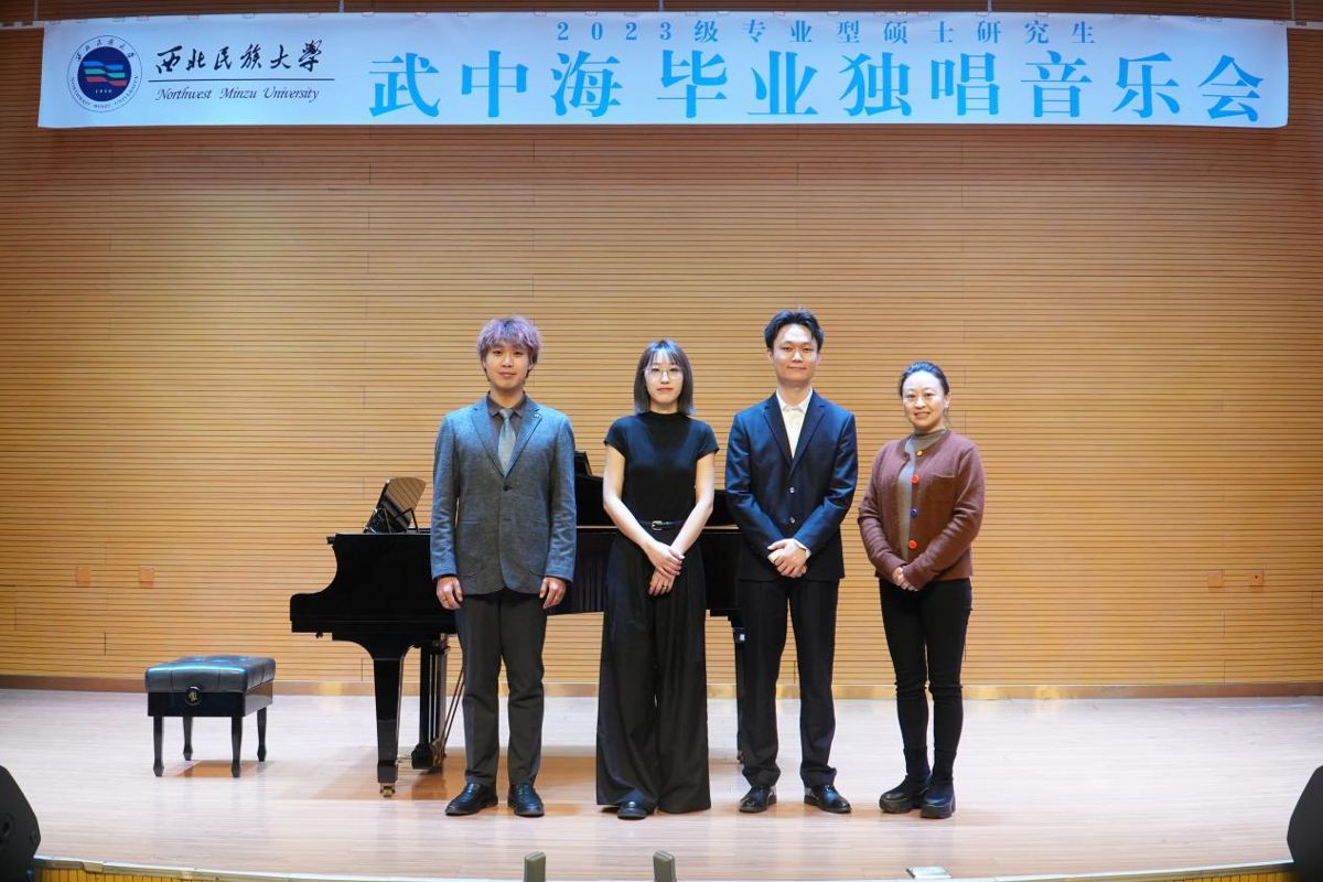 2025年11月13日晚上8点,2023级专业型硕士研究生武中海成功举办毕业独唱音乐会。 整场音乐会历时一个小时,共演唱了《被禁止的音乐》《重归苏莲托》《请别忘了我》《我的入党志愿书》等12首作品,其中中文作品6首,外文作品6首。 本场音乐会导师朱子健副教授,参加本场音乐会的评委老师有吴灵萍、范芸、尹胜麟;主持人肖静川。