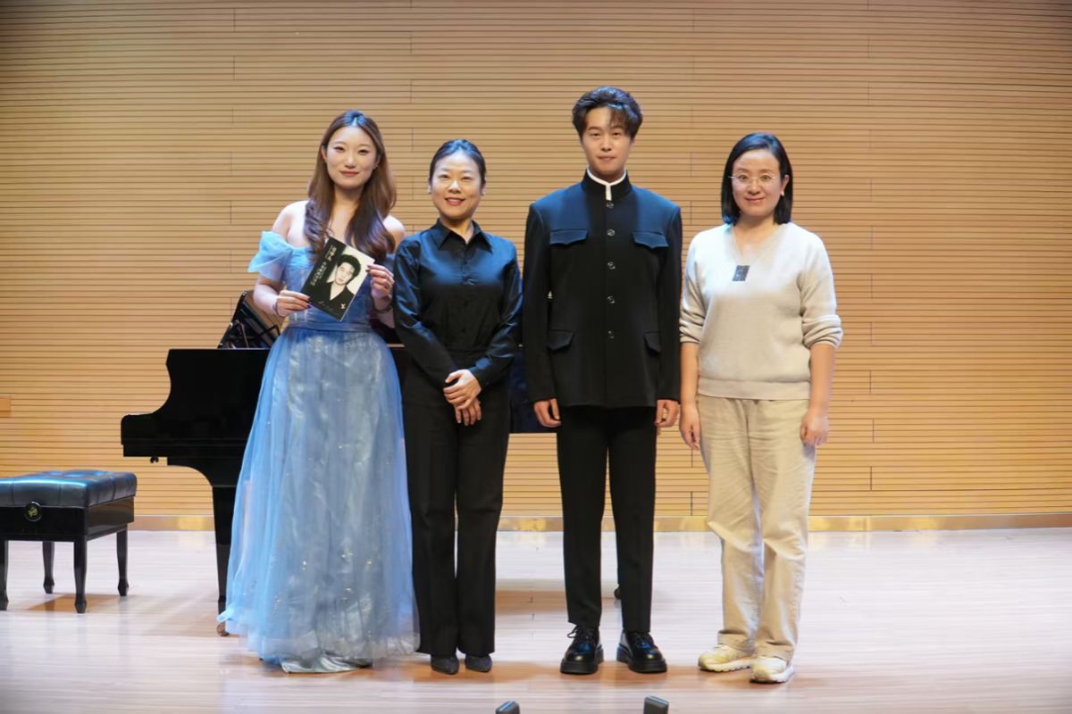 2025年11月17日17:00,2024级专业型硕士研究生赵彬杰成功举办首场独唱音乐会。 整场音乐会进行了约一个小时,共演唱了十二首作品,分别是《我亲爱的》《多么幸福能赞美你》《游移的月亮》《我要建一座王宫》《恒河上升起太阳》《告诉我,玛丽尤》《凤求凰》《春花秋月何时了》《水调歌头·明月几时有》《越人歌》《踏雪寻梅》《我的爱人你可听见》。 本场音乐会的指导教师为杨扬副教授,艺术指导王艳丽老师,主持人宫紫馨。参加本场音乐会的评委老师有李凤莲、赵炜民、朱子健。