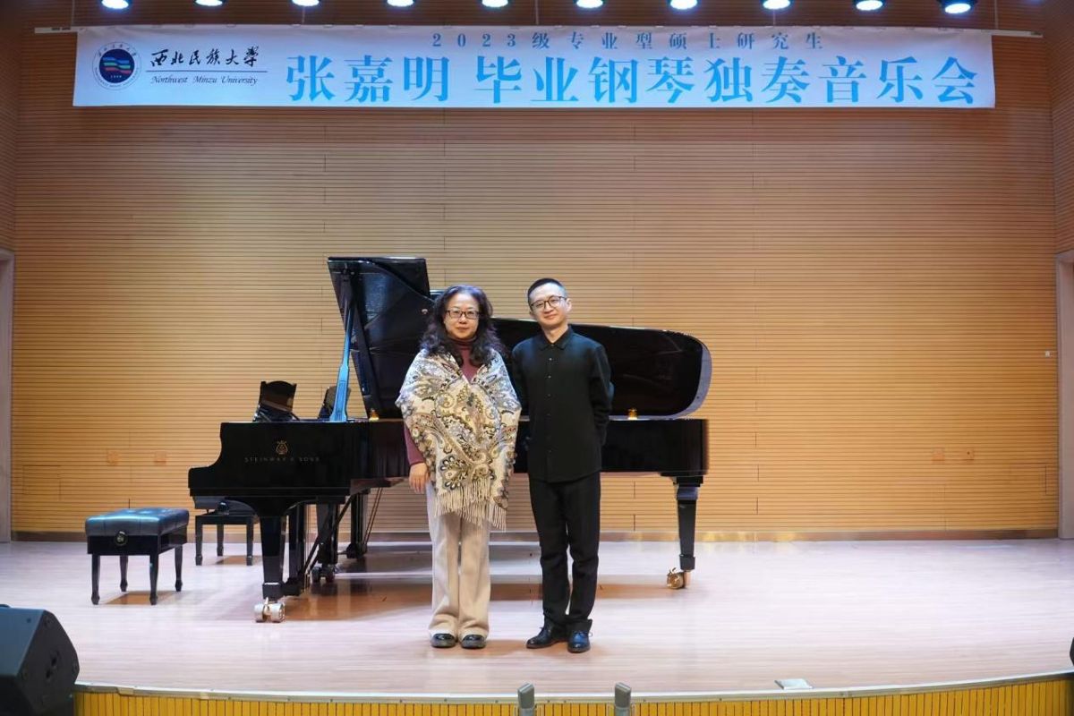 2025年11月27日9:00,2023级专业型硕士研究生张嘉明成功举办毕业钢琴独奏音乐会。 本场音乐会的评委老师有刘一芃、孟玫、滕丽民。整场音乐会历时1小时,共演奏三首作品,上半场:巴赫《法国组曲BWV813(C小调第二号)》、必弹曲目:肖邦《降A大调第三钢琴叙事曲》。下半场:D小调第二十钢琴协奏曲,K.466(第一乐章)。 本场音乐会主持人周思敏。