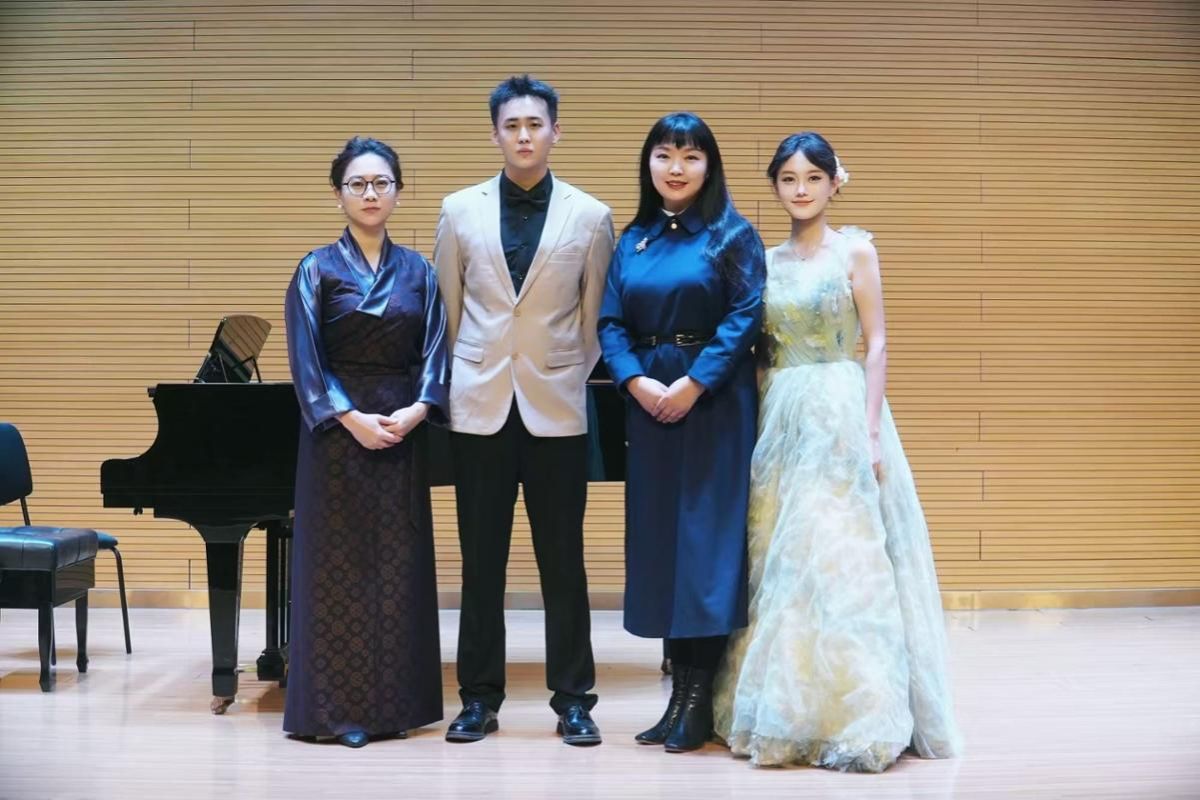 2025年11月27日14:00,2024级专业型硕士研究生刘骐玮成功举办首场独唱音乐会。 整场音乐会进行了约一个小时,共演唱了十二首作品,分别是《小夜曲》《告诉我,玛丽优》《那不可能》《别君叹》《菩萨蛮·小山重叠金明灭》《汉宫春·立春日》《我的草原》《大红公鸡毛腿腿》《鹰翔》《那一晚》《乌苏里船歌》《天路》。 本场音乐会的指导教师为红霞教授,艺术指导扎西措老师,主持人田亚男。参加本场音乐会的评委老师有马睿、张鹏远、王茜燕。