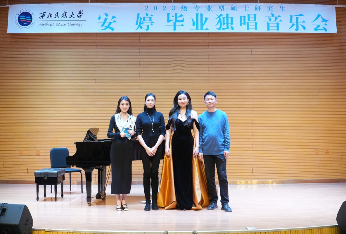 2025年12月3日,2023级专业型硕士研究生安婷成功举办毕业独唱音乐会。 参加本场音乐会的评委老师有红霞、邢延青、尹辉。整场音乐会历时一个小时,共演唱了《我的深情为你守候》《敕勒歌》《这美好的夜晚多寂静》《侯爵请听》《当我扮演天真的乡村姑娘》等十二首作品,其中外国作品九首,中国作品三首。 本次音乐会艺术指导刘一芃老师,主持人苏俪。