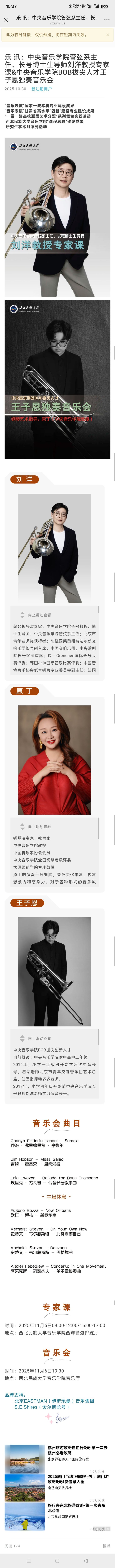 乐 讯:中央音乐学院管弦系主任、长号博士生导师刘洋教授专家课&中央音乐学院BOB拔尖人才王子恩独奏音乐会