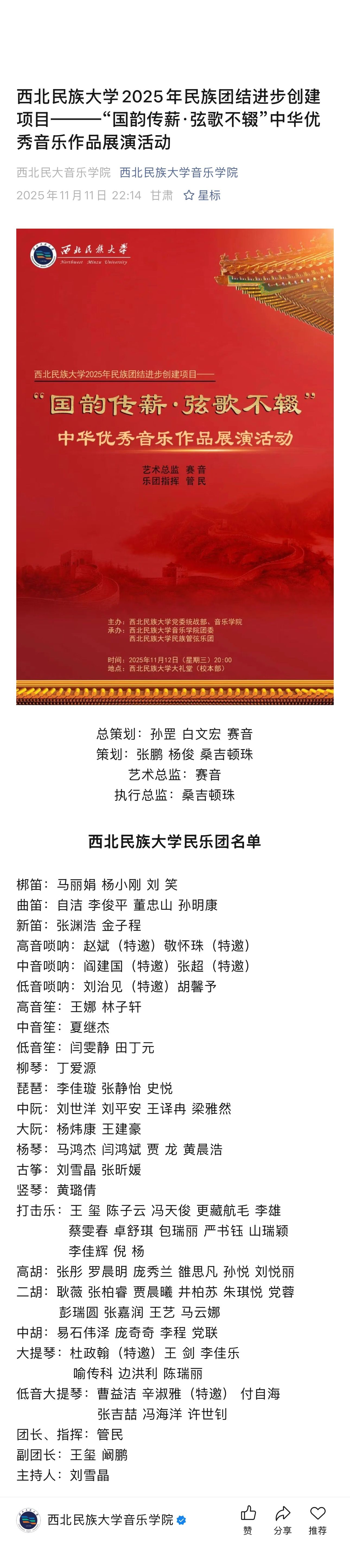2025年民族团结进步创建项目“国韵传薪•弦歌不辍”中华优秀音乐作品展演活动