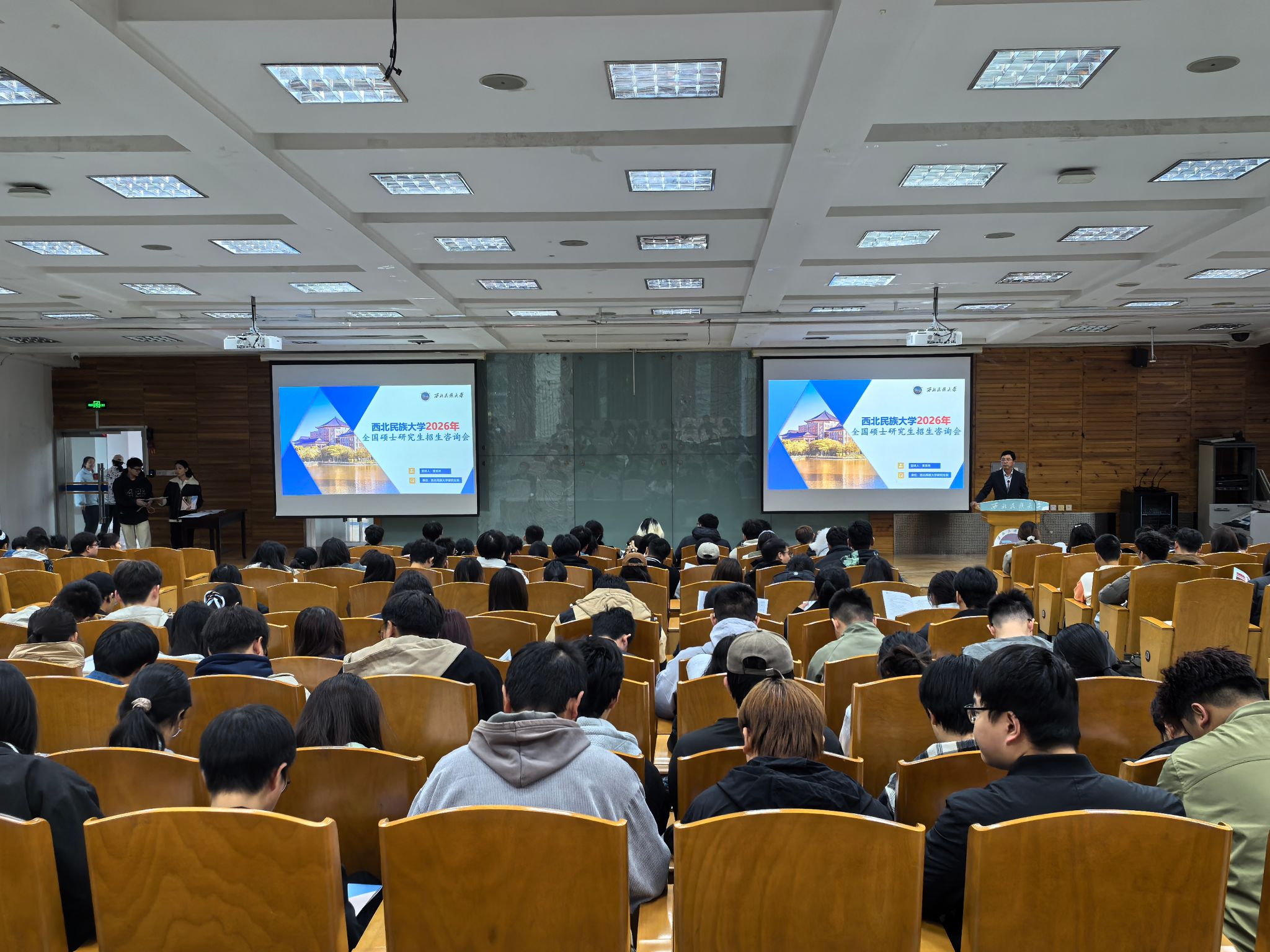 为帮助考生深入解读2026年全国硕士研究生招生政策,全面展现学校学科专业优势与人才培养特色,进一步提升优质生源质量。10月14日至15日,研究生院分别在榆中校区、西北新村校区举办“西北民族大学2026年硕士研究生招生宣传现场咨询会”。各研究生培养单位研究生秘书及学生共计300余人参会。